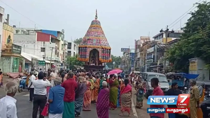 சிதம்பரம் சிவகாமசுந்தரி அம்மன் கோயில் தேரோட்டம்   கொட்டும் மழையிலும் வடம் பிடித்து இழுத்த பக்தர்கள்