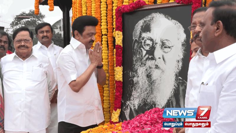 பெரியாரின் நினைவு தினத்தை முன்னிட்டு முதலமைச்சர் மு.க.ஸ்டாலின் பெரியாரின் உருவப்படத்திற்கு மலர்தூவி மரியாதை செலுத்தினார்.