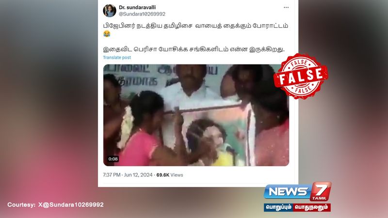 இந்நிலையில் தமிழிசை சௌந்தரராஜனின் போஸ்டரில் அவரின் வாயை தைத்து பாஜகவினர் போராட்டம் நடத்தியதாக வீடியோ ஒன்று சமூக வலைத்தளங்களில் பரவி வருகிறது.
