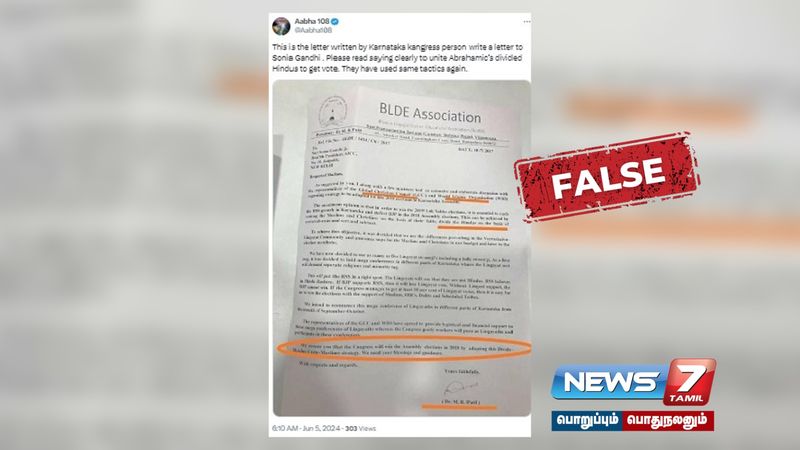 மதரீதியாக வாக்குகளை பிரிக்க கர்நாடக காங்கிரஸ் சதி? என்று கூறி போலியாக கடிதம் ஒன்று பரப்பப்பட்டது அம்பலம்!