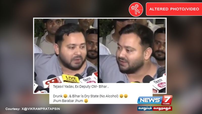 ராஷ்ட்ரிய ஜனதா தளம் கட்சித் தலைவர் தேஜஸ்வி யாதவ் மது அருந்திவிட்டு செய்தியாளர்களை சந்தித்து பேசியதாக வெளியான வீடியோ தவறானது என்பது உறுதியாகியுள்ளது.