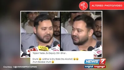 ராஷ்ட்ரிய ஜனதா தளம் கட்சித் தலைவர் தேஜஸ்வி யாதவ் மது அருந்திவிட்டு செய்தியாளர்களை சந்தித்து பேசியதாக வெளியான வீடியோ தவறானது என்பது உறுதியாகியுள்ளது.