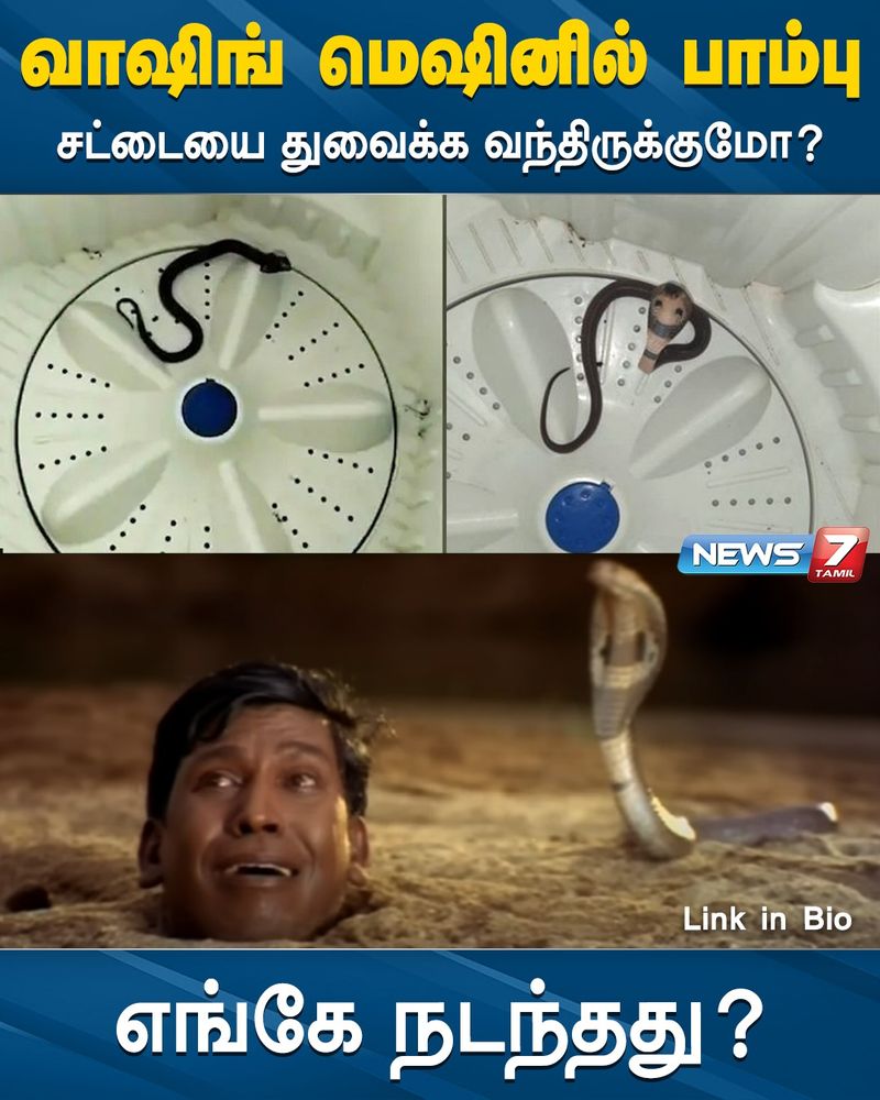 வாசிங்மெஷினுக்குள் நுழைந்தபாம்பு - சட்டையை துவைக்க வந்திருக்கும் என ட்ரெண்ட் செய்த நெட்டிசன்கள்!